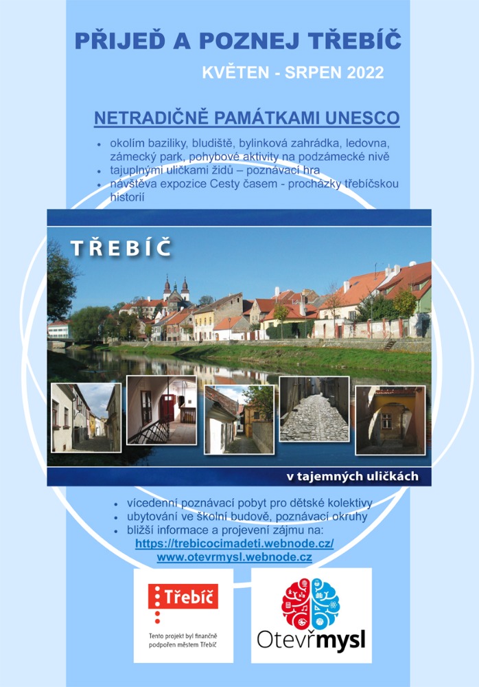 Projekt zval do Třebíče děti z různých škol s České republiky, které měly možnost přespat ve škole a měly možnost poznat Třebíč s průvodci dětí ze školy. Pro děti byly nachystány různé možnosti včetně her a navštívení zajímavých míst v Třebíči, akce byla podpořena grantovým systémem Zdravého města Třebíč, děkujeme...